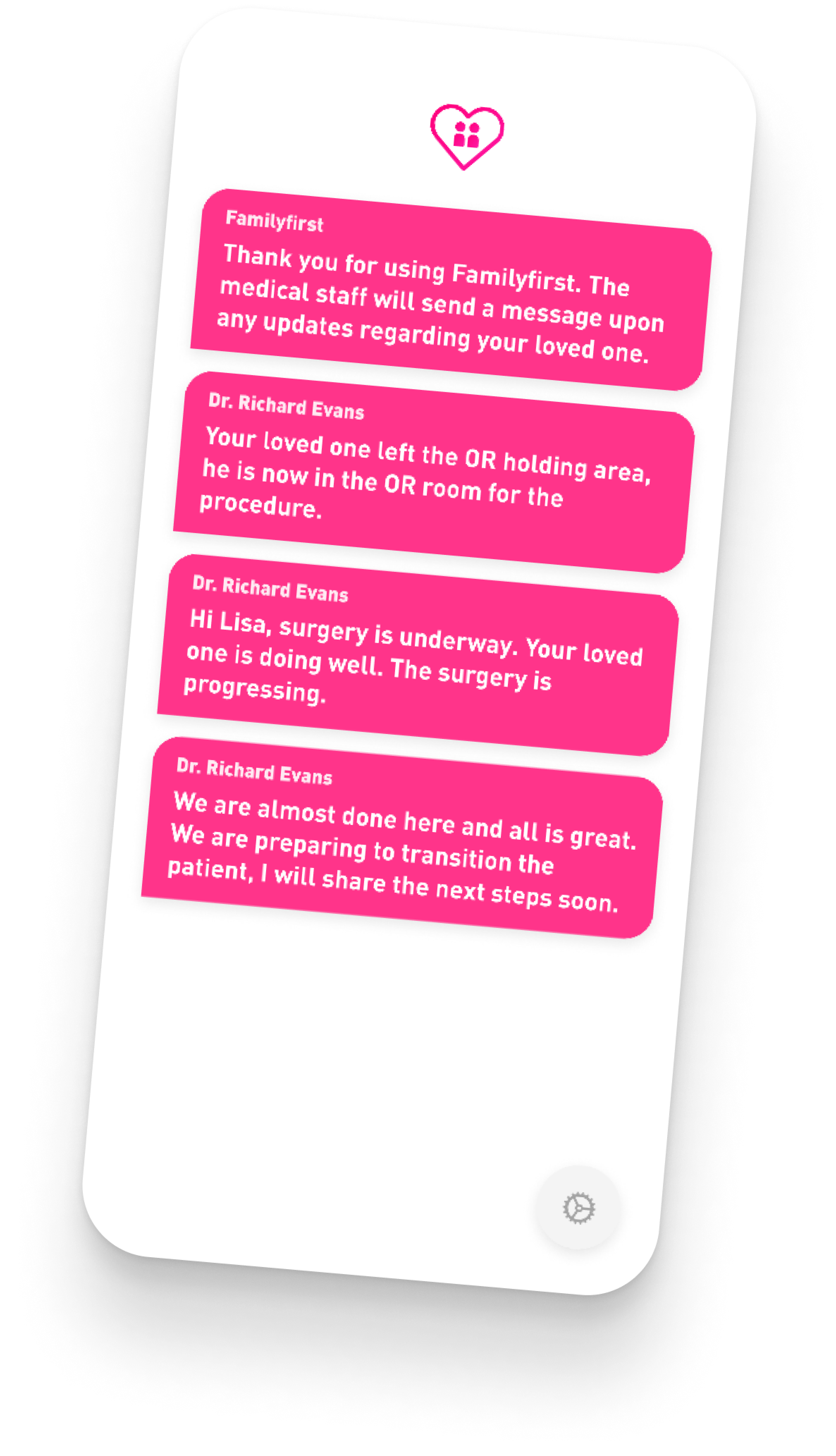 The family will receive messages in real-time, and be alerted by a push notification on their device. The interface for family members is very simple, yet powerful.